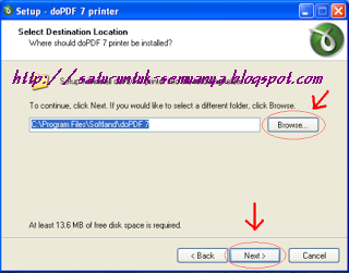 - Pilih "browse" jika Anda mau menginstal aplikasinya pada drive lain (selain drive C).lalu klik "next". Namun jika Anda mau menempatkan aplikasinya pada drive C, maka Anda langsung saja klik "next".